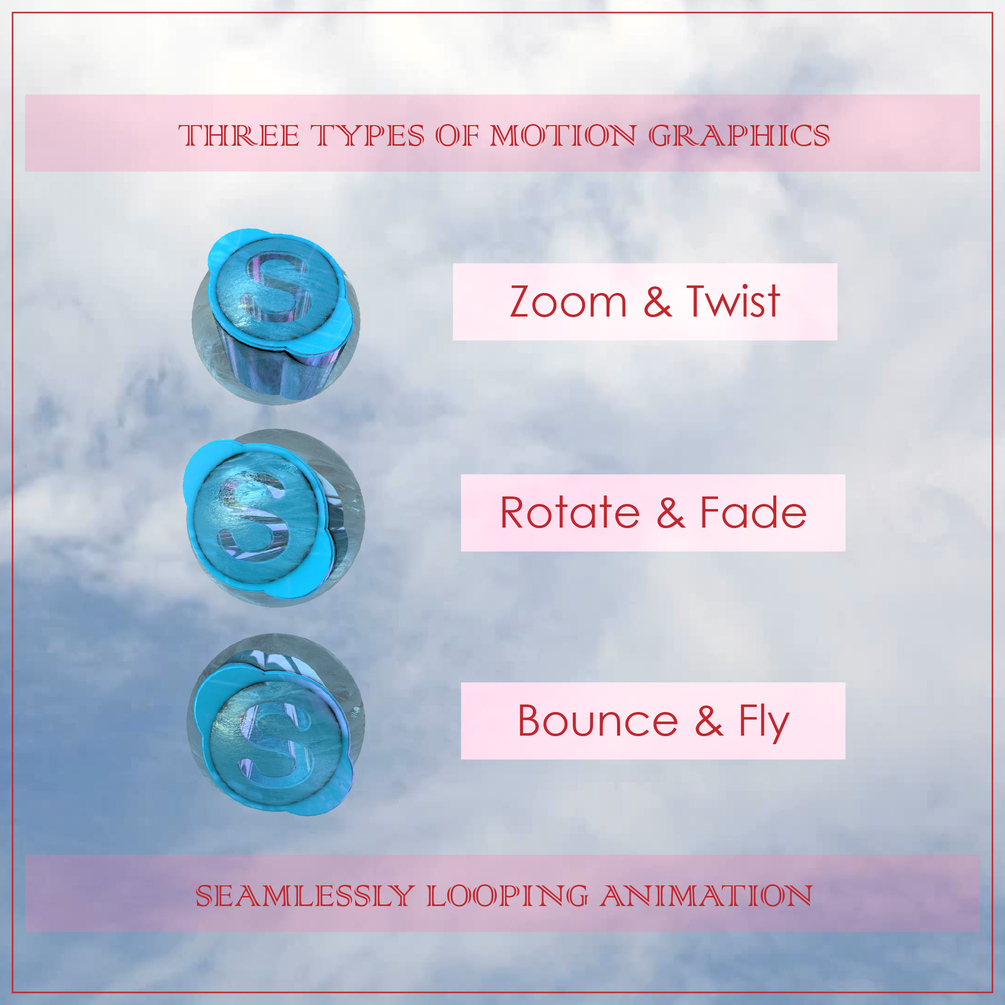 Three 3D Motion graphics. 5 seconds duration each video clip.