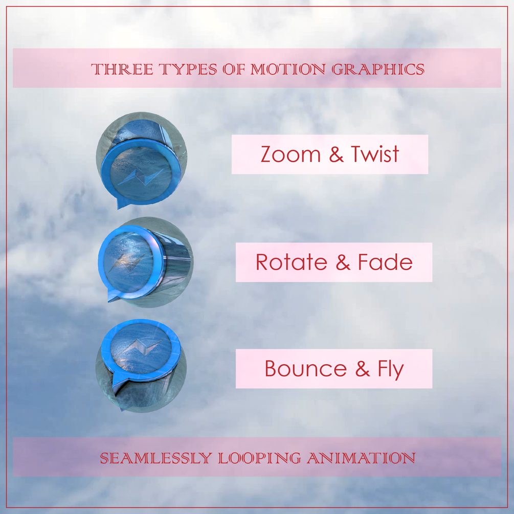 Three 3D Motion graphics. 5 seconds duration each video clip.